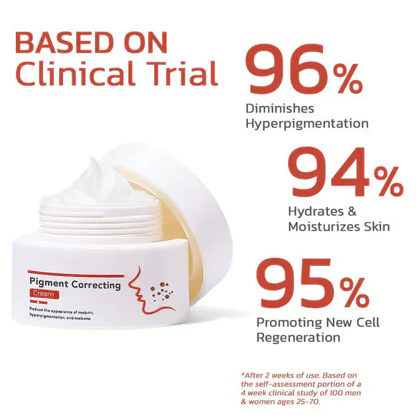 The Pigment Correcting Cream is a potent skin treatment that targets dark spots caused by hyperpigmentation. When applied to the skin, the cream's active ingredients work together to inhibit the production of melanin and prevent the transfer of melanin to the skin's surface, helping to reduce the appearance of dark spots and even out skin tone.